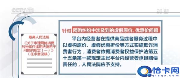 针对网购纠纷中涉及到的虚假原价、优惠价问题,最高法在《征求意见稿》中提出: 平台内经营者在提供商品或者服务过程中以虚构原价、虚假优惠折价等方式实施欺诈消费者行为,消费者依据消费者权益保护法第五十五条第一款规定主张平台内经营者承担赔偿责任的,人民法院应予支持。