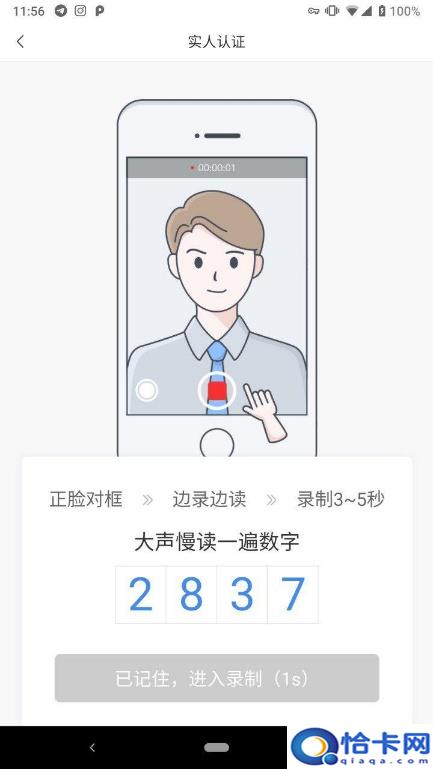 实人认证的过程略为有些繁琐,在录入姓名、身份证号并上传身份证正反面照片后还有借助手机摄像头进行人脸信息视频采集的环节,采集过程中需要我们保持正脸对框并根据屏幕慢读数字。