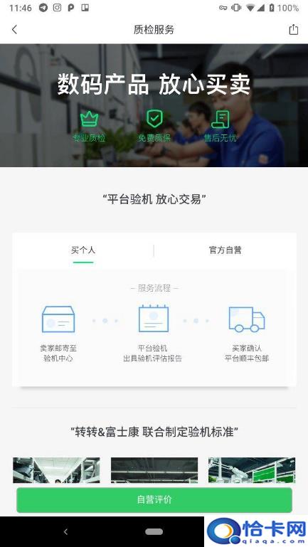 有了合理的价格、靠谱的买卖双方,在二手交易中我们接下来要考量的就是二手商品本身的质量。转转在这里联合富士康引入了一个颇有特色的验机平台,通过引入第三方质检标准来解决二手商品尤其是二手手机交易过程中最易引起纠纷的质量问题。