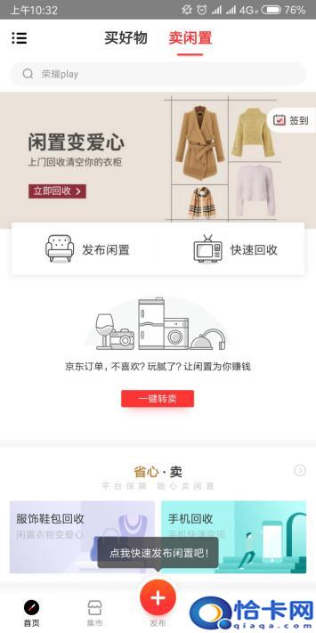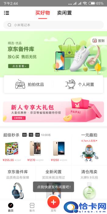 但是用户需要出售的闲置物品并非都是从京东上购买,所以可能在一定程度上对限制了个人卖家入驻。另外,我们在主界面上看到“集市”的功能,类似于闲鱼的“鱼塘”,却没有那么活跃。不过,这种属于京东生态圈下二手商品质量保证对于大部分二手买家来说也是好事。虽说这样可能打击了部分卖家的积极性,但是能杜绝很大一部分“黑心卖家”。