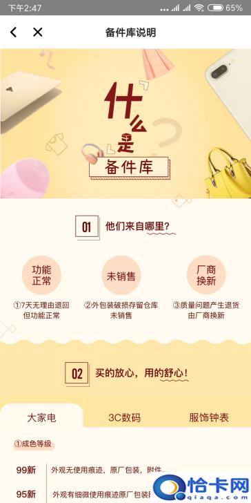 此外,拍拍二手还建立了京东配件库。从备件库说明以及商品介绍上看,我们可以看出里面的商品都是来自京东自营的,只是存在着一点外观上的瑕疵。而且,搜索后我们发现,里面的商品几乎都是9成新以上的,甚至有不少是9.9新的商品。