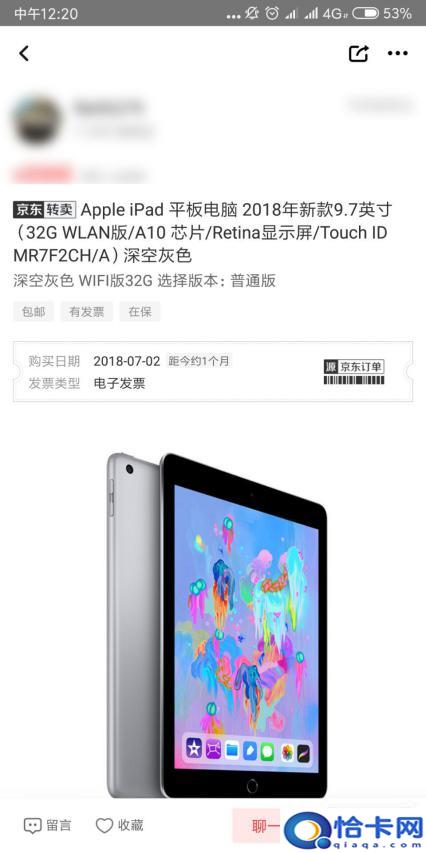 拍拍二手有了官方自营的二手商品,其个人卖家的竞争力相对来说有点低。但这并不意味着平台将个人卖家“抛弃”了。我们点开一个2018款iPad的出售信息,一眼就看到了“京东转卖”这四个字。该商品在京东的购买日期、发票等情况都能看到。买家可以通过这些信息确定商品的具体情况,产品来路明确能增强用户对产品的信息;对于卖家来说也能省去不上沟通解释的麻烦。