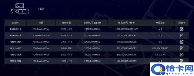 很多小白买固态硬盘只看产品形态,认为M.2的固态硬盘就一定是高速盘,其实这是一个误区。实际上M.2形态的固态硬盘,其接口协议有很多,这是一个跟主控强关联的参数。目前旗舰主控已经支持PCIeGen4x4,以群联旗舰主控PS5018-E18为例,这款主控便支持PCIeGen4x4,它的理论最大读写速度高达7400/7000MB/s,这已经接近上代PCIeGen3硬盘理论性能的两倍了。