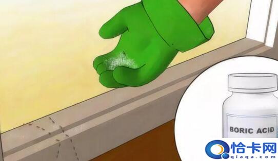 它是全天然物质,对付蚂蚁十分有效。蚂蚁吃下硼酸后,会胃部中毒而亡。硼酸和硅藻土一样,也会破坏蚂蚁的外骨骼。硼酸有白色或蓝色粉末状,撒在蚂蚁经常出没的地方,例如护壁板附近或窗台。