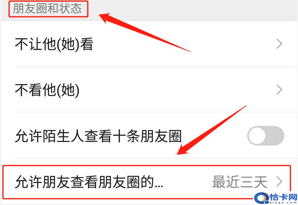 点击隐私选项以后,下拉菜单,找到“朋友圈和状态”,选择“允许朋友查看朋友圈的范围”。如下图:
