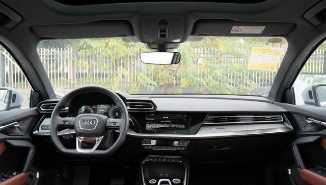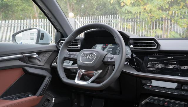 来到车内,奥迪A3也是有一种扑面而来的大众味,遮住车标,很多人第一眼也会将其认为是大众的车型。嵌入式的中控屏尺寸不大,只有10.1英寸,低配车型配备的是10.25英寸全液晶仪表,高配则升级到12.3英寸,当然也可以花2000块进行选装,不过个人觉得没有必要。值得一提的是,奥迪A3其他配置还是比较有诚意的,比如标配了8喇叭的扬声器、皮质座椅、定速巡航以及真皮方向盘,而且还支持CarPlay、车联网等功能。不过在智能化方面,显然还是有所欠缺的,毕竟定位摆在这。
