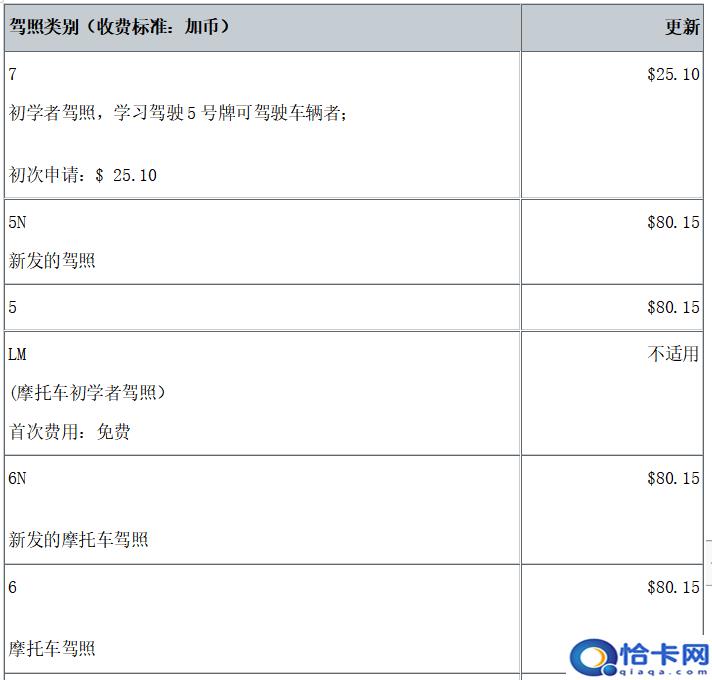 v 驾照升级:$11.90v 背书费用:A, B, C, D & E: $11.90