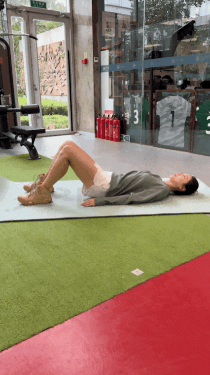 仰卧屈膝,双脚平放,收缩臀部和腹部,将髋部抬离地面,使身体从肩膀到膝盖成一条直线,保持数秒后放下。锻炼核心和臀部力量。[5]