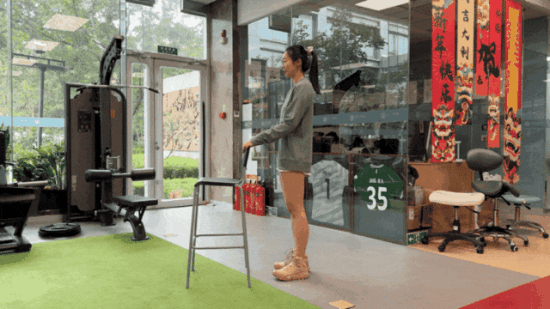 扶住稳固的椅背,双脚与肩同宽,缓慢屈髋屈膝下蹲,如同要坐椅子,臀部下降 15-30 厘米即可(不超过膝盖弯曲 90 度),然后站起。每组 8-10 次,完成 2-3 组。[5]