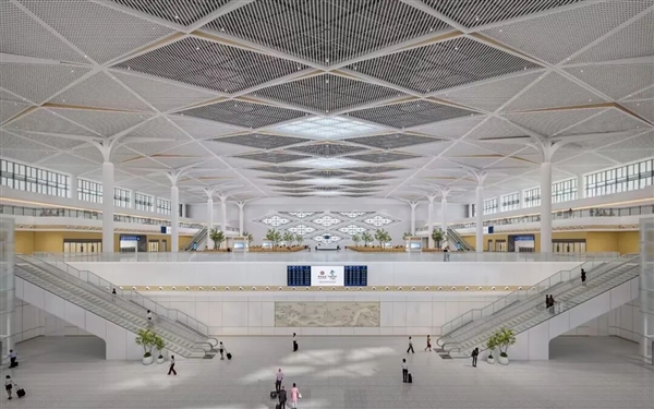 侧式站房和高架候车室,采用“上进下出”的旅客进出站流线,立面整体舒展大气,两翼犹如大鹏展翅。