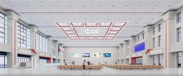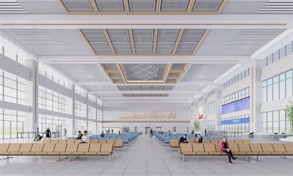 红色的搭配既有汉代特点,又有现代时尚感,营造出温馨舒适的候车氛围。