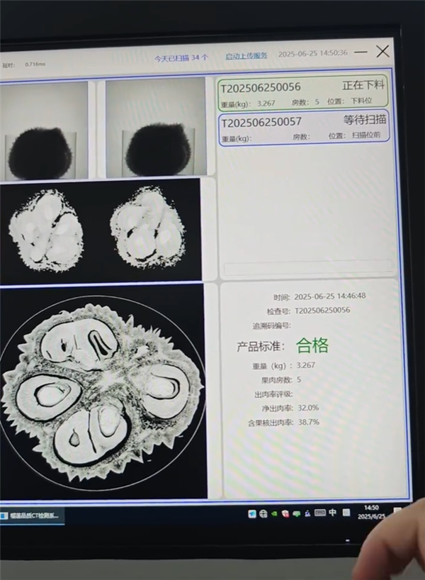 检测后还会生成专属“品质身份证”,记录果品质量、出肉率等关键信息,像一份详细的“体检报告”。