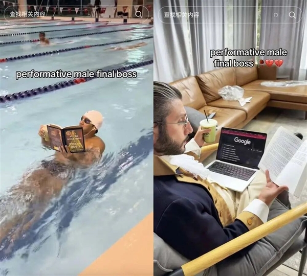 TikTok上关于#performativemale的内容观看次数超过1.49亿次,谷歌搜索关于“抹茶”“有线耳机”“表演型”的趋势大幅增加。大家玩梗都玩疯了。