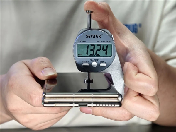 虽说一切都是为了让 Mate XTs 能有更加轻薄的机身 —— 完全展开状态下,Mate XTs 最薄处仅有 3.68 mm,折叠的情况下,机身最薄处也只有 13.24 mm。