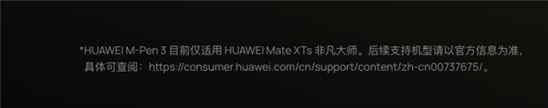 之前有跟大家讲过这支新发的 M-Pen 3 跟之前华为给平板出的 M-Pencil 属于不同的系列,从官网发布的信息来看,目前这支笔是 Mate XTs 独享的,其他平板和折叠屏暂时都还不支持。