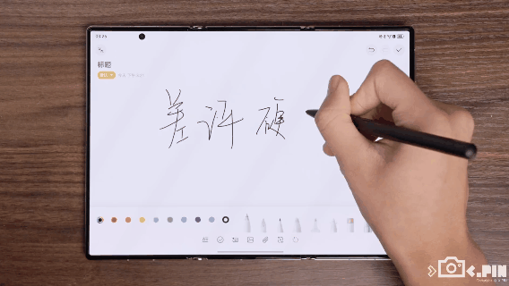 当然这样的笔尖设计也是有代价的,用它在偏软的折叠屏上写字的时候,体验就很像拿铅笔在一本湿透了的书上写字差不多,远没有在平板上那么丝滑。