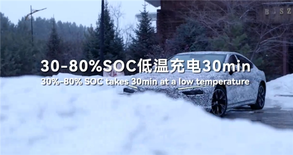 最关键的是无惧低温,实测-30摄氏度环境中,从30%充电至80%仅需30分钟,可用电量93%,10%SOC亏电状态下可维持120km/h高速行驶。