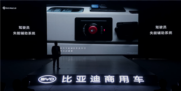 应用驾驶员失能辅助系统2.0,在司机突发紧急情况时,乘客可利用仪表台中的一键停车按键,让车辆自动安全停车,系统触发后,车辆将自动开启双闪,并发出警报进行声音提醒。