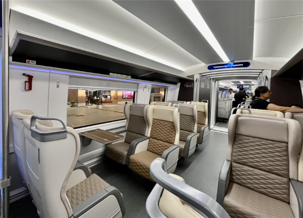 中车四方股份公司高级主任设计师朱建华介绍,通过自主技术攻关,列车实现了关键核心技术的全面自主化。“作为首列中国标准智能市域列车,该车构建了中国标准体系,中国标准在采用的技术标准中占比达88%。”朱建华表示,列车创新搭载了十余项核心技术,在智能化、安全性和舒适性等方面实现全方位升级。