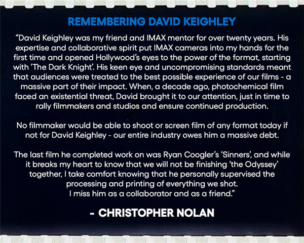 不过咱今天说这个,倒不是因为电影,而是IMAX技术的奠基人,大卫·基格利(David Keighley)去世了,老头享年78岁。