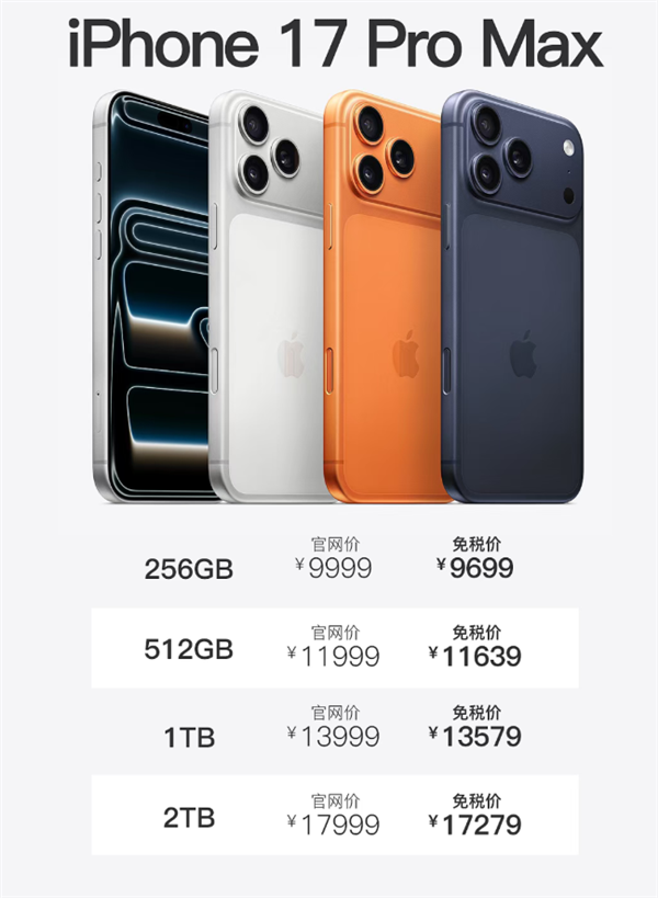 目前,海南免税版iPhone 17系列售价已公布,相比苹果官网更为优惠,海控全球精品免税城官方公布的价格如下: