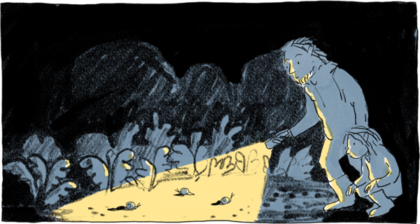 吉赛尔是一位插画家兼作家,有一天她正在清理自家院子,挖蔬菜的时候偶然发现一只蜗牛。