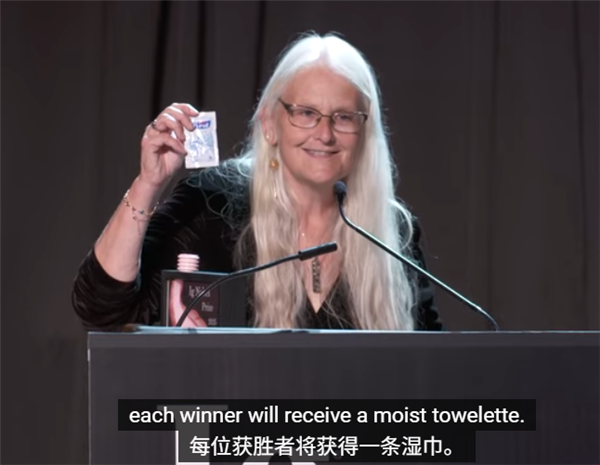 所以今年的奖品,改成了一张——湿纸巾。