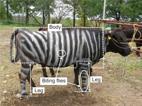 起因是,养牛的很讨厌牛被叮咬,因为可能会传播疾病,所以来找这群日本研究者求助。研究者突然想到,似乎有人研究过,斑马进化出条纹就是为了防蝇叮咬。