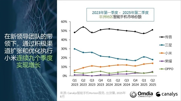 Canalys首席分析师Manish Pravinkumar表示:“对超低价智能手机的需求正在重塑非洲市场,100美元以下机型在第二季度激增38%,并自2023年以来持续拉低平均售价。”