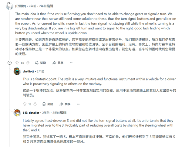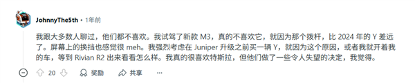 真正能够证实脖子哥想法的,是今年年初,特斯拉车辆工程负责人接受采访时亲口承认,因为该设计在欧洲这种环岛多的地方投诉较多,所以在焕新 Y 上回归了转向拨杆。