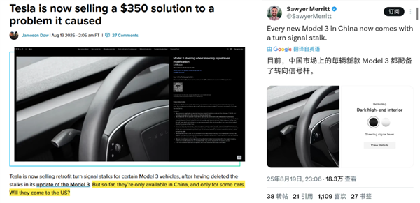 但紧接着,我司这位特斯拉车主的优越感就被这行小字打回现实:“仅适用于 25 年 2 月后生产的无转向拨杆 Model 3”。