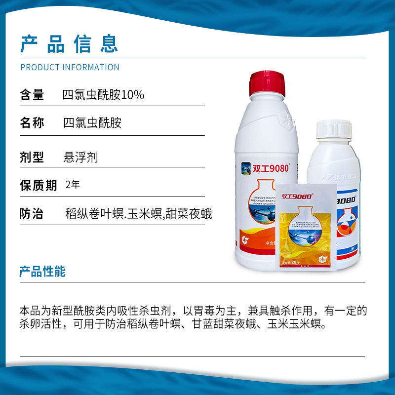 使用中化双工9080四氯虫酰胺非常简单,只需按照说明稀释后喷洒于作物表面即可。建议在害虫活动高峰期进行施药,以获得最佳效果。此外,定期检查作物情况,根据实际需要调整施药频率,可以有效避免害虫抗药性的产生。