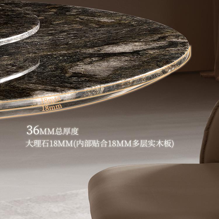 天然大理石圆餐桌,选用优质天然大理石材料,每一块石材都蕴含着大自然的独特韵味。大理石表面的纹理自然流畅,色彩丰富,每一处细节都透露出无与伦比的奢华感。这种天然石材不仅美观大方,而且质地坚硬,耐磨损,易于清洁保养,能够长期保持其美丽的外观。