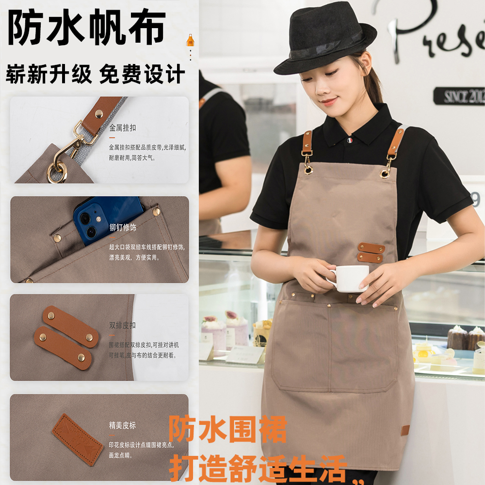 作为一款专为餐饮业设计的帆布围裙,防水功能自然是它的最大亮点之一。无论是在制作美味的奶茶,还是烘焙各式各样的甜点,甚至是处理食材时不小心溅到的水渍,这款围裙都能轻松应对。