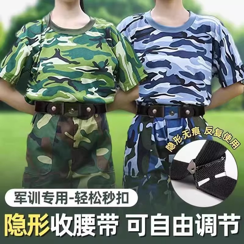 军训穿搭难题怎么破?新款迷彩军训懒人裤腰带来帮忙!专为大学生设计,隐形弹力收腰,轻松解决军训裤腰带走光问题,让你的军训穿搭既舒适又时尚。