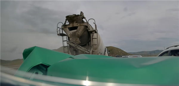 从曝光的行车记录仪画面中可以看到,事发突然,水泥罐车毫无征兆地冲向对向车道,径直撞上了一辆宝石绿色的小米YU7。