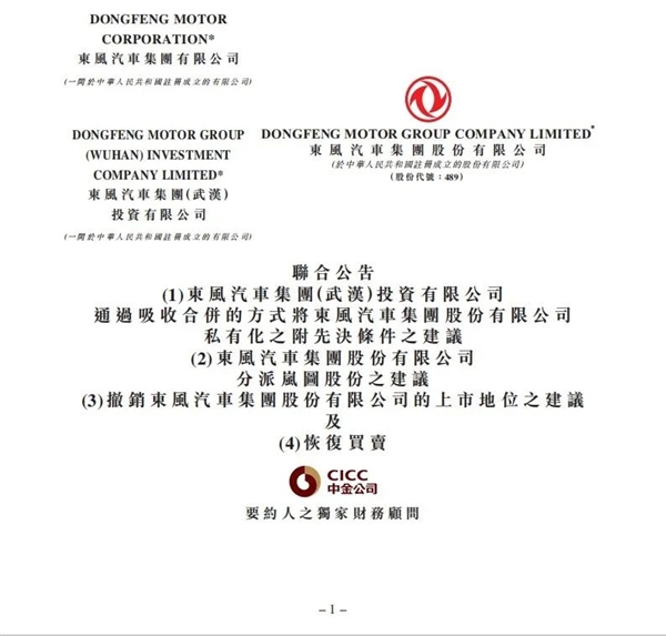 8月23日消息,昨晚,东风集团股份发布公告,宣布将通过其子公司东风汽车集团(武汉)投资有限公司进行“吸收合并”实现私有化退市。