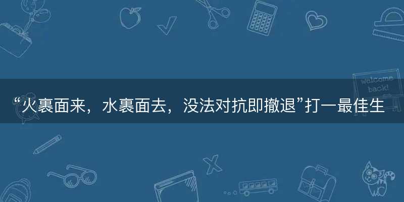 “火裹面来,水裹面去,没法对抗即撤退”的生肖寓意与生活智慧1,“火裹面来,水裹面去,没法对抗即撤退”并成语解释意义上的成语,而更像是一句融合了自然元素与生肖隐喻的表述了。大家将尝试从中提炼出生肖元素,赋予其新的寓意和可读性。
