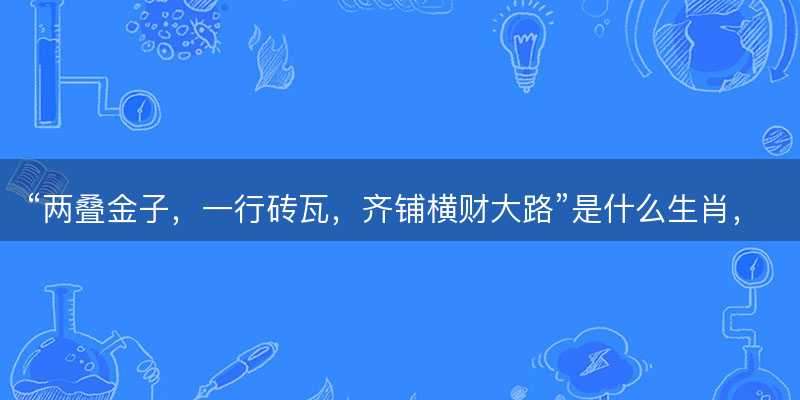 “两叠金子,一行砖瓦,齐铺横财大路”成语解释1,“两叠金子,一行砖瓦,齐铺横财大路”并成语解释意义上的成语,相反一个富有象征意义和想象力的表达了。小编将尝试从这一表达中提炼出与生肖相关的元素,并结合、进行详细解读,以增加其趣味性和可读性。